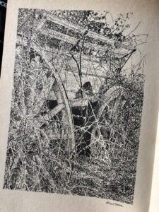 An old farm waggon being over grown with briars – today it could be an old tractor of plough…