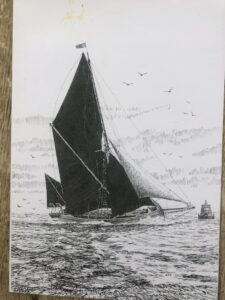 Above is a depiction of the shapely Memory, now a ruin in the saltings off Woodrolfe Creek, Tollesbury.