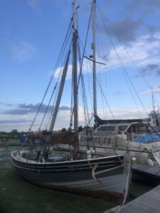 I had come across this old lady on a visit to The Blackwater Marina at Maylandsea some years ago but now moored and based at this delightful haven, I have taken a greater interest. She is owned by yard manager, Beccs Polden.