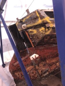 Vivid’s current owner has told me that the top planks, some deck planks and top half of transom are to be renewed. The hull has been surveyed and there are plenty of yellow markings! She also mentioned that the engine was to be removed too…