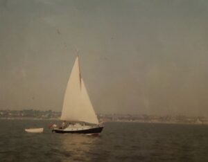 Christobel remembered me once scarphing a new piece of wood into the top of Blue Tail’s mast. I also replaced one side of the centre board case too. The biggest project undertaken was the fitting of a new Vire petrol engine to replace a vacant space once taken by a Stewart Turner. A lack of headroom within the boat was its biggest shortcoming… Our old boat was purchased by a Burnham ‘big yacht’ crew member and went away to the R. Crouch. We never came across her again.