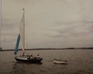 I came home on leave from a ship in 1980 and Christobel said that there were a couple of boats for sale at the Leigh-on-Sea SC. One was a ply-wood constructed Yachting World Peoples Boat, seen below.