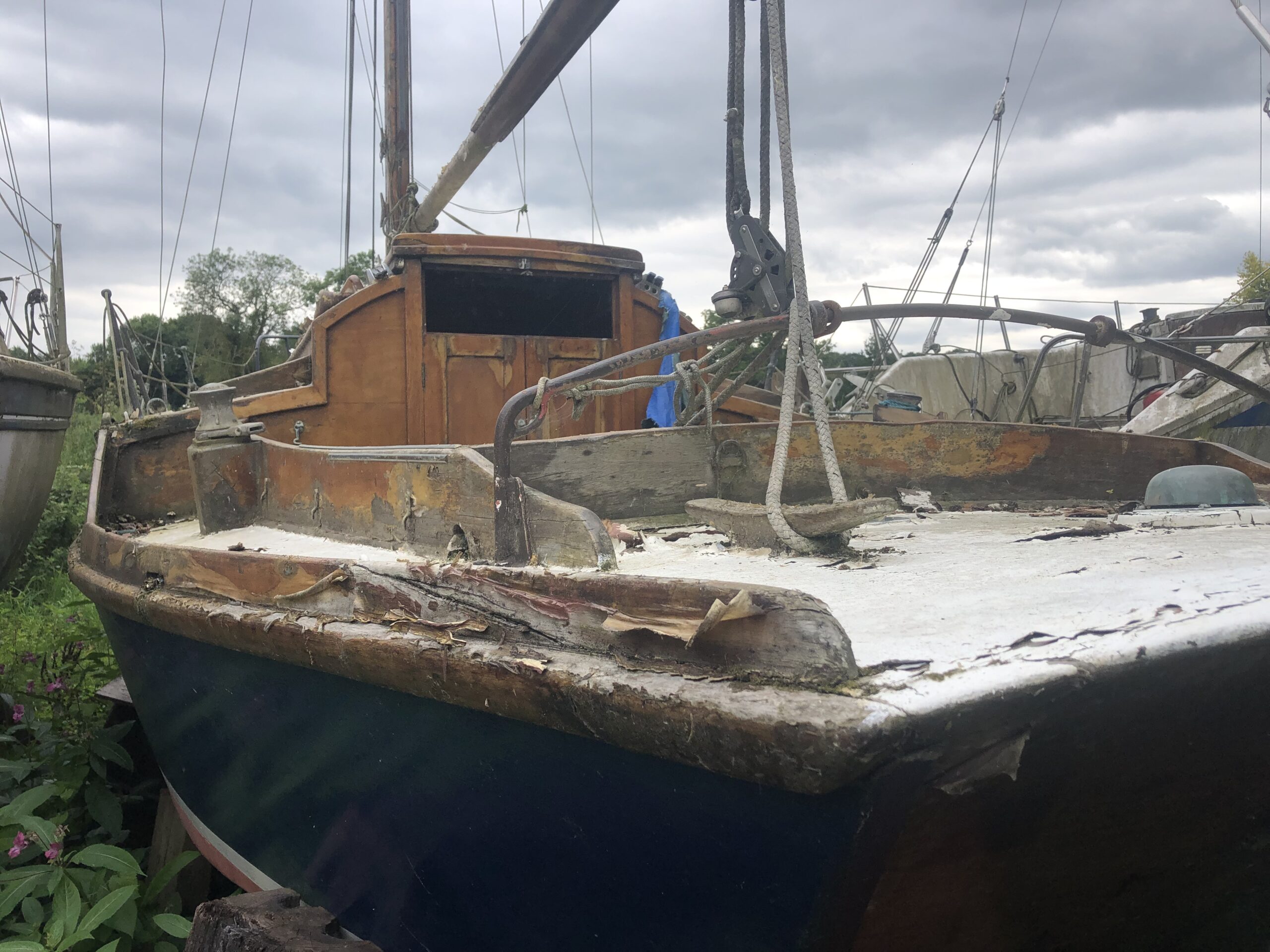 The Pin Mill boat has clearly been ashore uncovered for some while and her days could well soon expire. If she was built in the 1950s then she would be around seventy years old. A cursory look round told me that there didn’t seem to be a lot wrong with the old girl.
